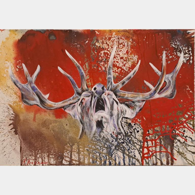 Hirsch in der Brunft - 100x70cm